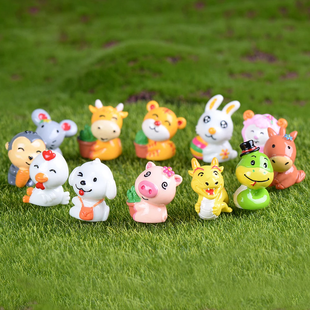 1 шт. маленькая фигурка различных животных, кошек, собак, обезьян, тигров, драконов, мышей, кроликов, Китай, Зодиак, сокровище, модель, украшени...