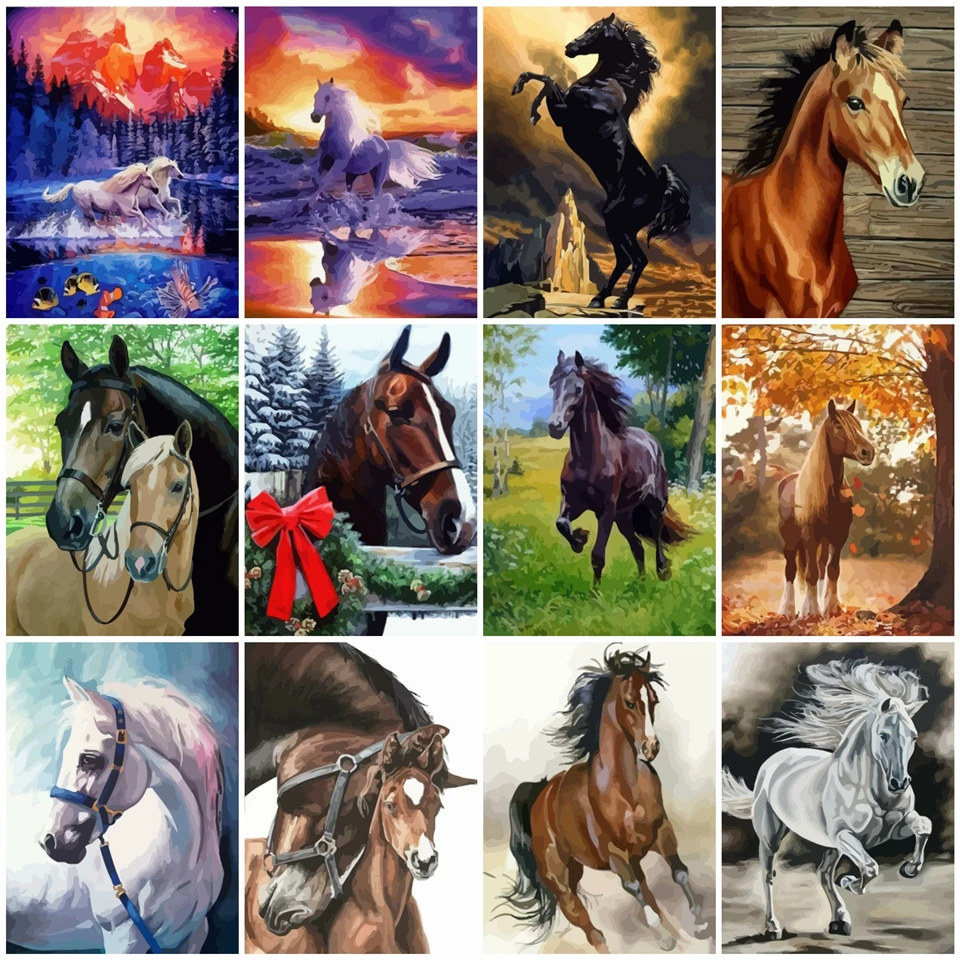 AZQSD, сделай сам, масляная краска по номерам, животное, акриловая краска, Раскрашивание по номерам, холст, лошадь для взрослых, ручная краска, п...