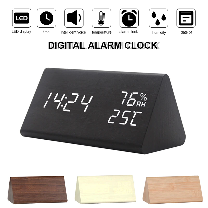 Цифровые деревянные будильник часы со светодиодным дисплеем Голосовое управление usb зарядка Будильник Повтор времени температура и влажно...