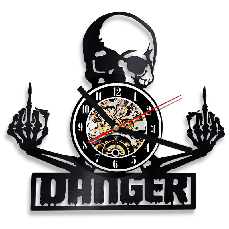 Черный Полые Череп Запись часы винил LP запись средний палец череп настенные часы декоративные светодиодный часы Современные настенные Кни...