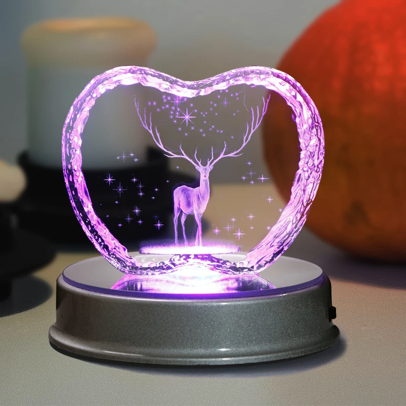 Миниатюрный хрустальный орнамент с оленем, цветной светодиодный гравировальный лазер, Рождественское украшение для дома