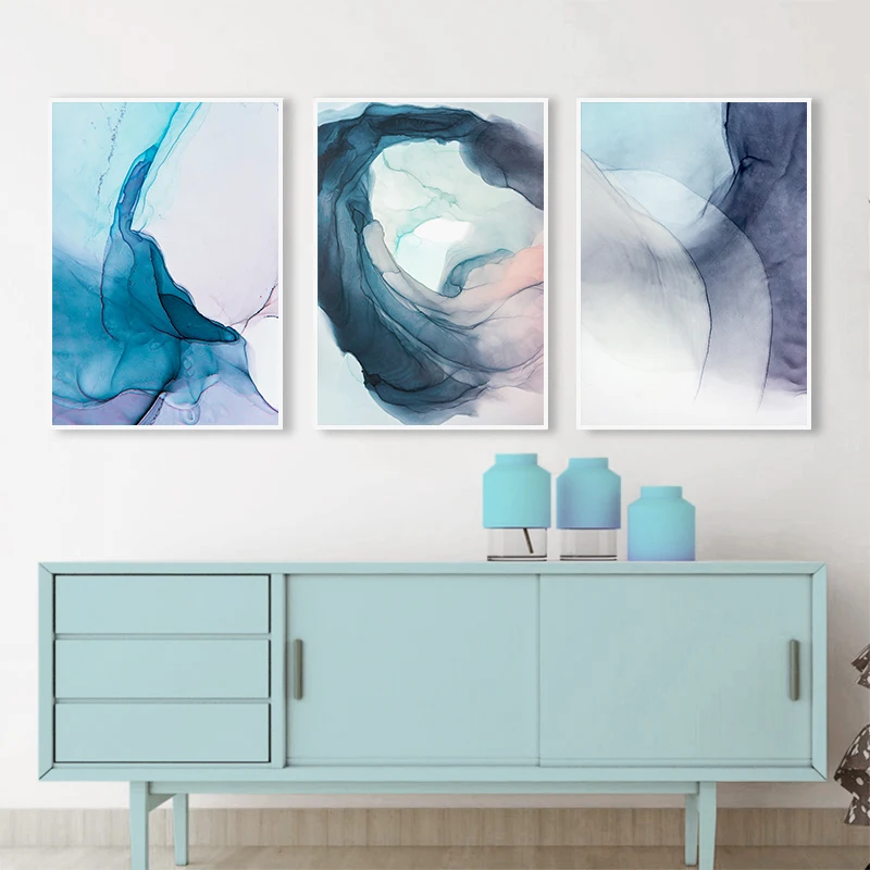 Современная Абстрактная Картина на холсте с акварельными синими чернилами, скандинавские плакаты и принты, настенные художественные картины для гостиной, домашний декор