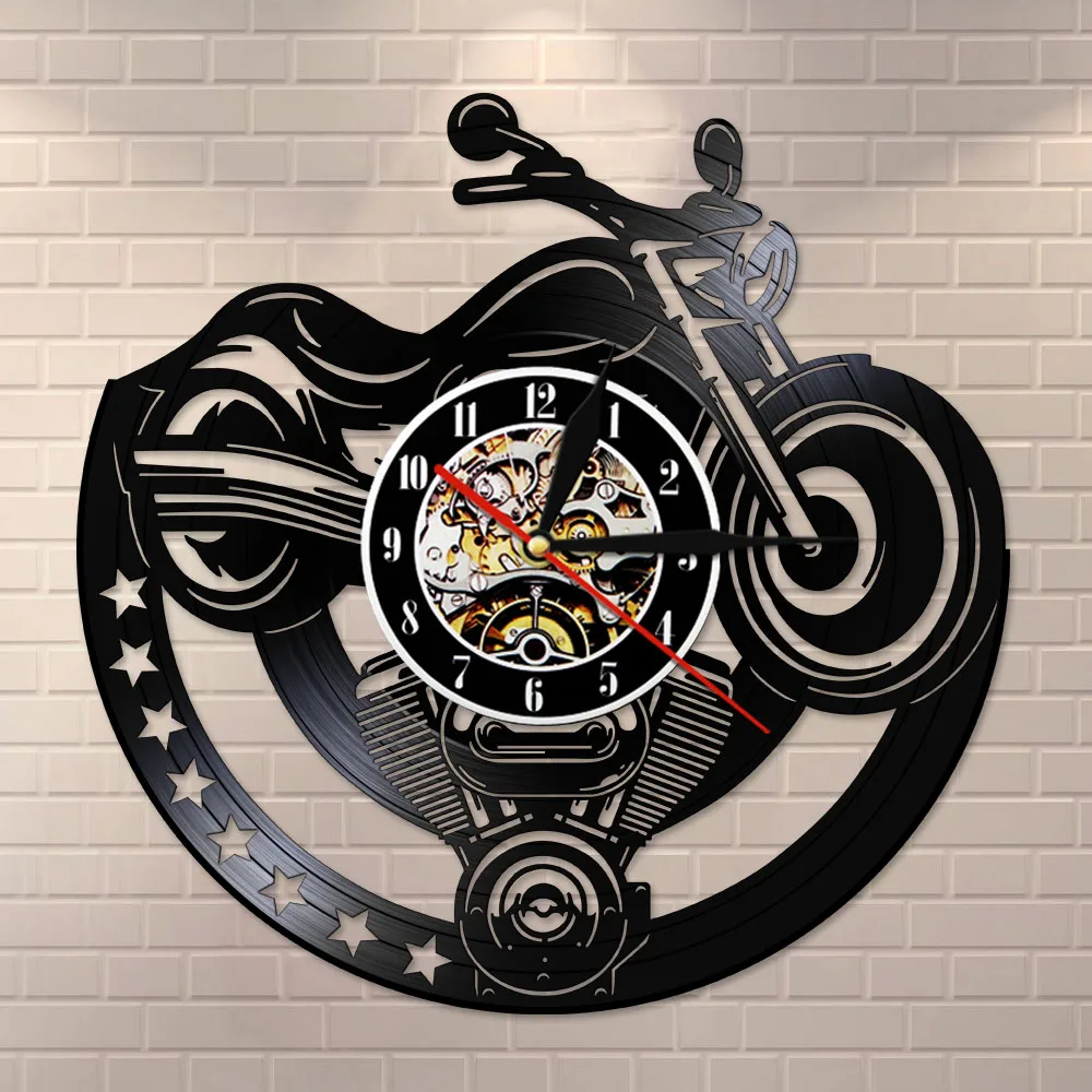 Винтажные мотоциклетные скоростные гонщики настенные часы Motobiker Motocross виниловые рекордные настенные часы Motorcyclist подарки декоративные наст...