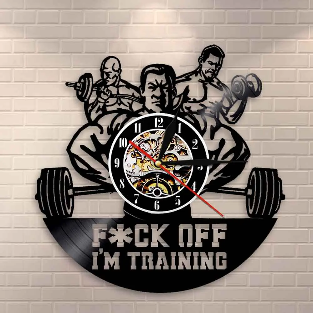 F-Off I'm Training GYM вдохновляющая Отправить предложение настенные часы бодибилдеры часы фитнес-комната настенный знак Crossfit Виниловая пластинка н...