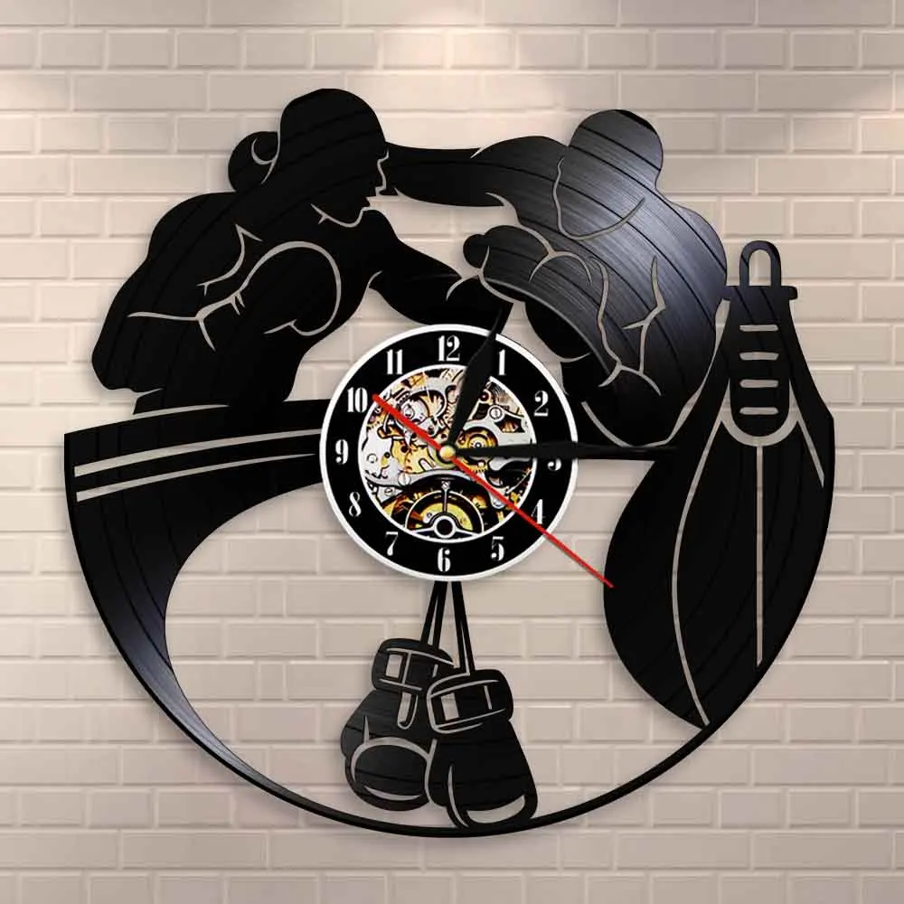 Бокс домашний декор настенные часы боксерские перчатки боксерская сумка Infighters Виниловая пластинка настенные часы боевые спортивные боксе...