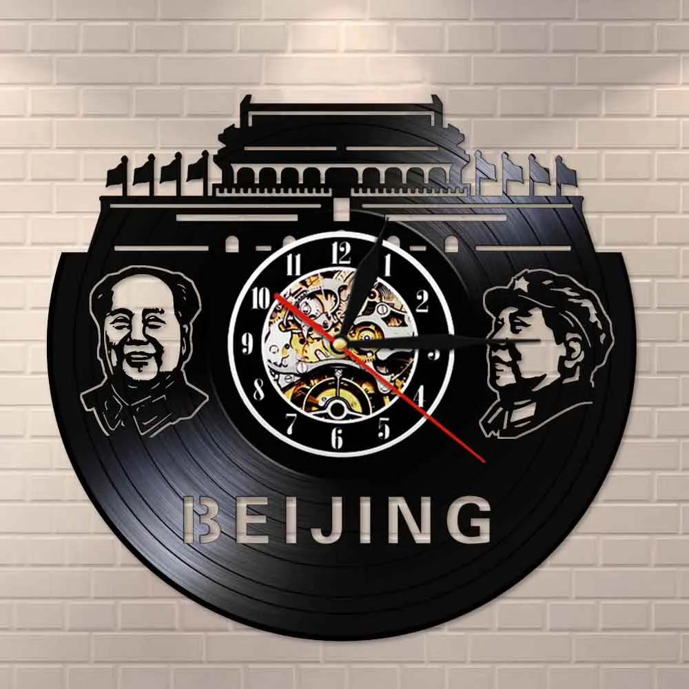 Пекинские горизонты настенные художественные виниловые пластинки настенные часы Мао портрет винтажные настенные часы Китай Пекин город подарок для путешествий