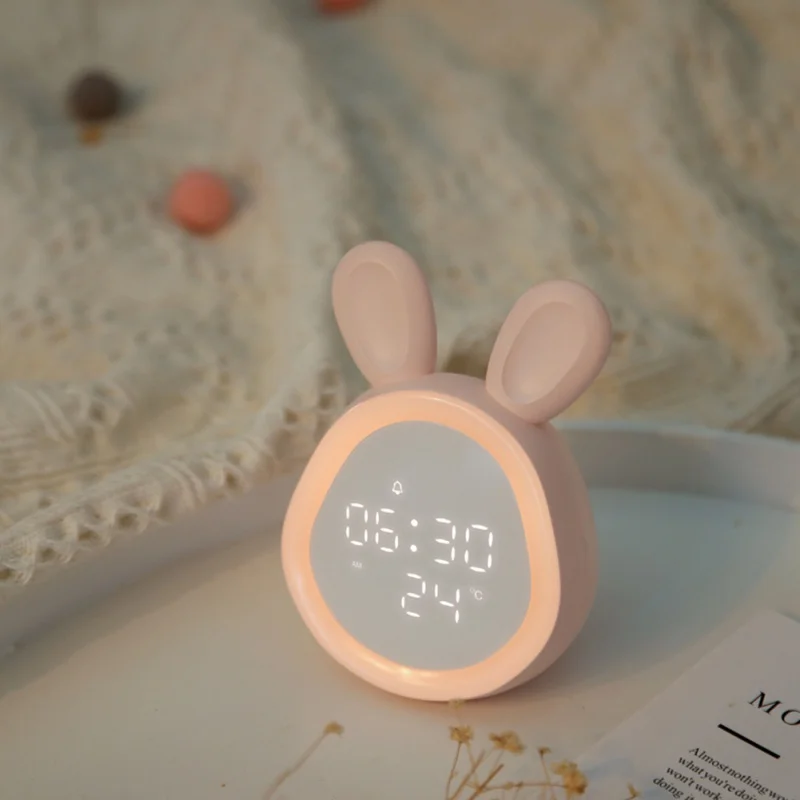Светодиодный Будильник с милым Кроликом, цифровые настольные часы с повтором сигнала, светильник с функцией пробуждения, электронные часы ...
