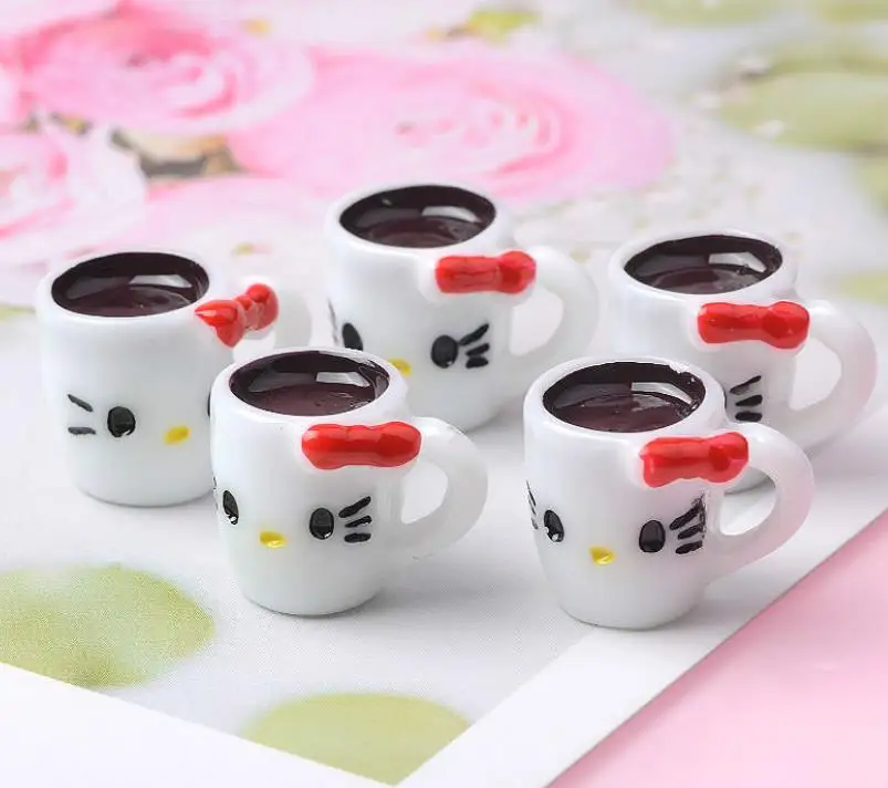 Каваи flatback смолы мультфильм Кот кофейная чашка Кабошоны для волос бант центры Скрапбукинг Декор Сделай Сам