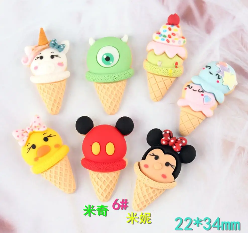 Оптовая продажа милый рисунок единорога Микки мороженое Смола плоская спина, кабошон муляж еды искусство поставка украшения поделка-Шарм