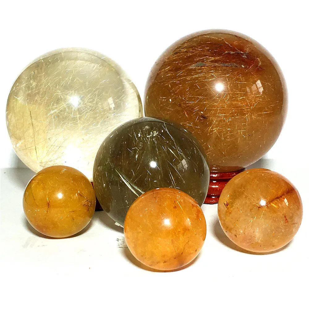 Натуральный кварцевый кристалл золотой волос Хрустальный шар украшение дома камень и кристалл