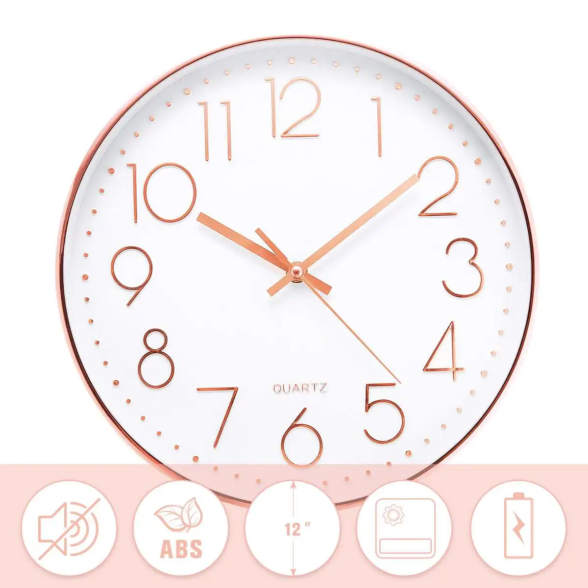 12 "розовое золото настенные часы, не тикающие, светящиеся, бесшумные настенные часы на батарейках для дома, гостиной, спальни, домашний декор