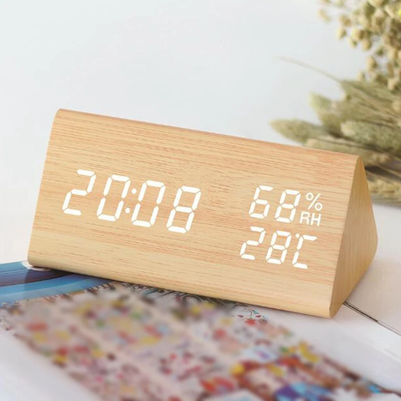 Humidity Clock Display Desk Electronic Multi functional Triangle Wooden