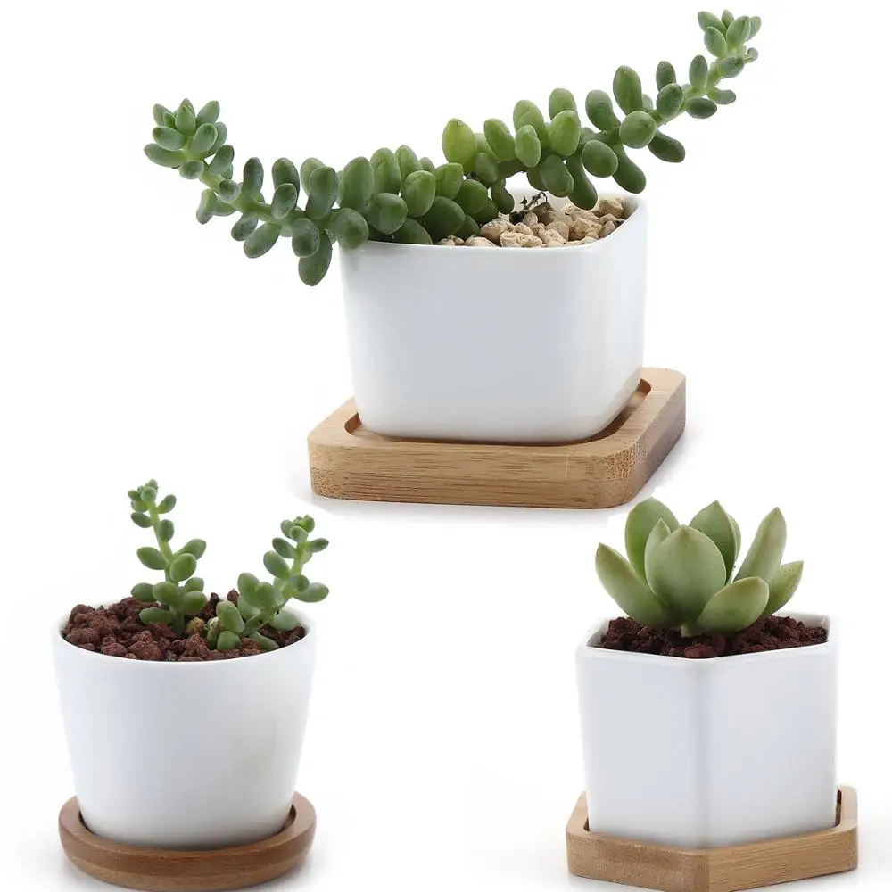 T4U Керамика шестиугольник сочные maceta горшок для карликового дерева подставка для кактусов горшки с Бесплатная бамбука лоток для украшения ...