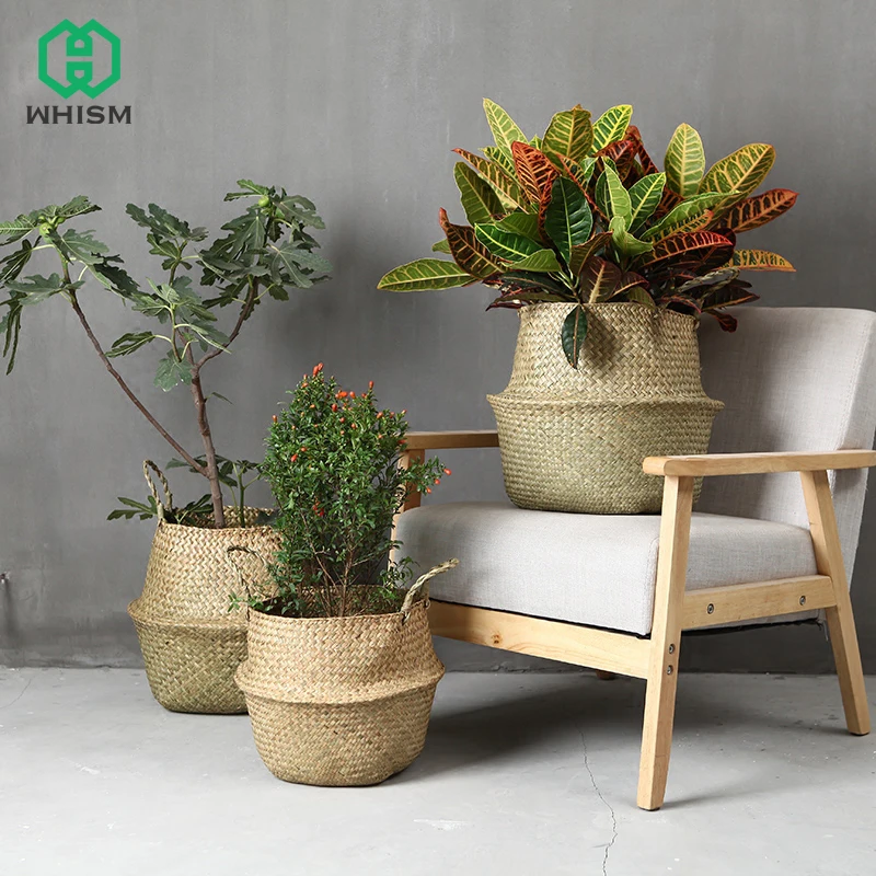 WHISM плетеная Seagrass складной цветочные горшки для выращивания ротанга горшок домашний декор Фрукты корзина для хранения игрушек соломы корзи...