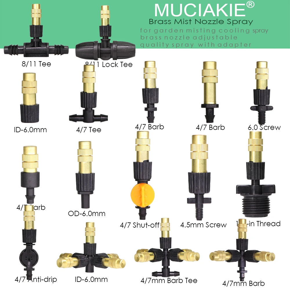MUCIAKIE 16 типов Регулируемый латунный патрубок Полив сада орошения спрей охлаждения части медный спринклер с разъемом