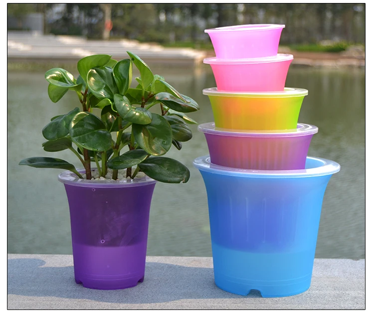 Цветной цветочный горшок для растений, домашний офисный декор, круглый для украшения сада, автоматический полив, 6 цветов p006