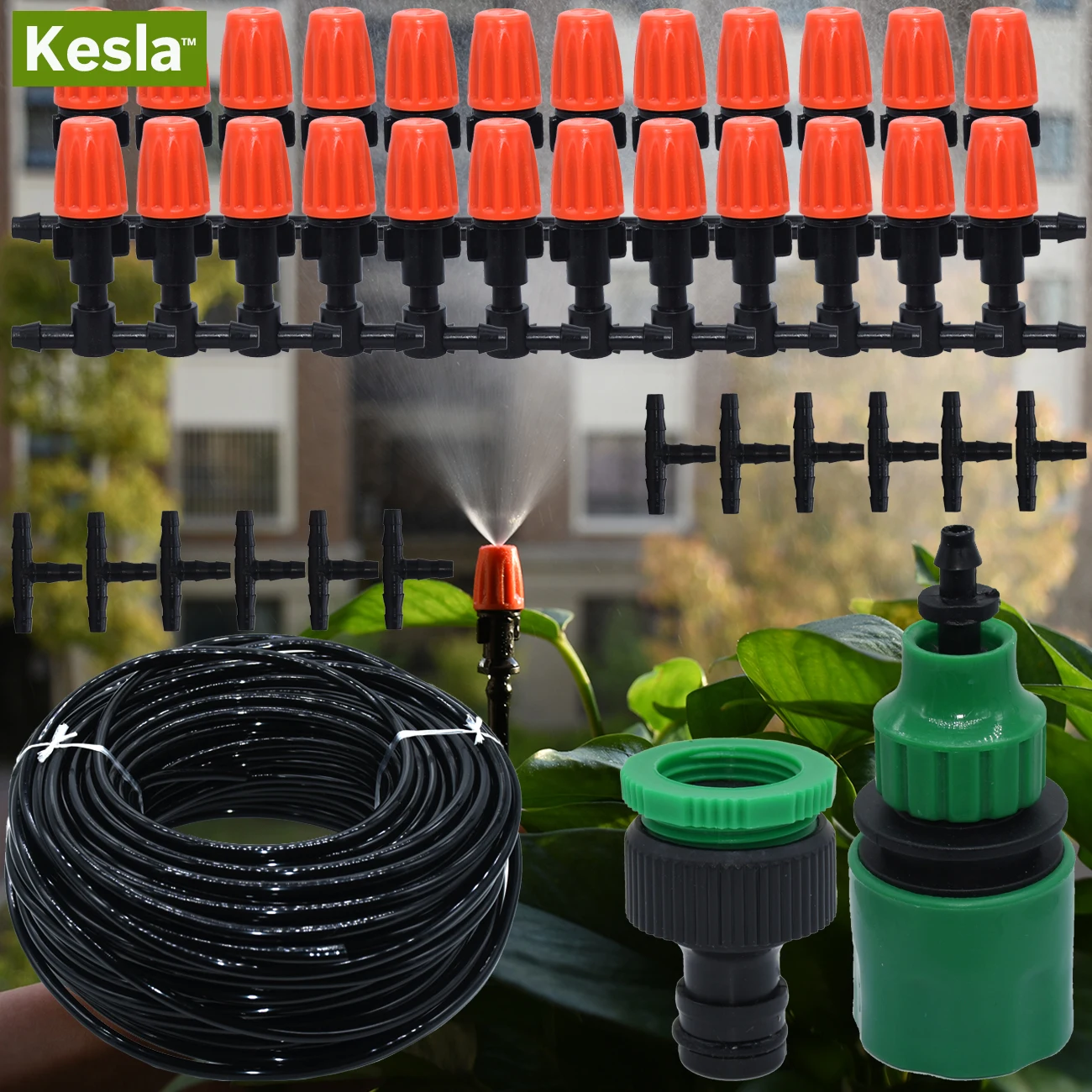 KESLA 25 м микро капельный полив комплект системы Автоматическая 360 спринклерная капельница распылитель для горшечных растений садовые теплиц...