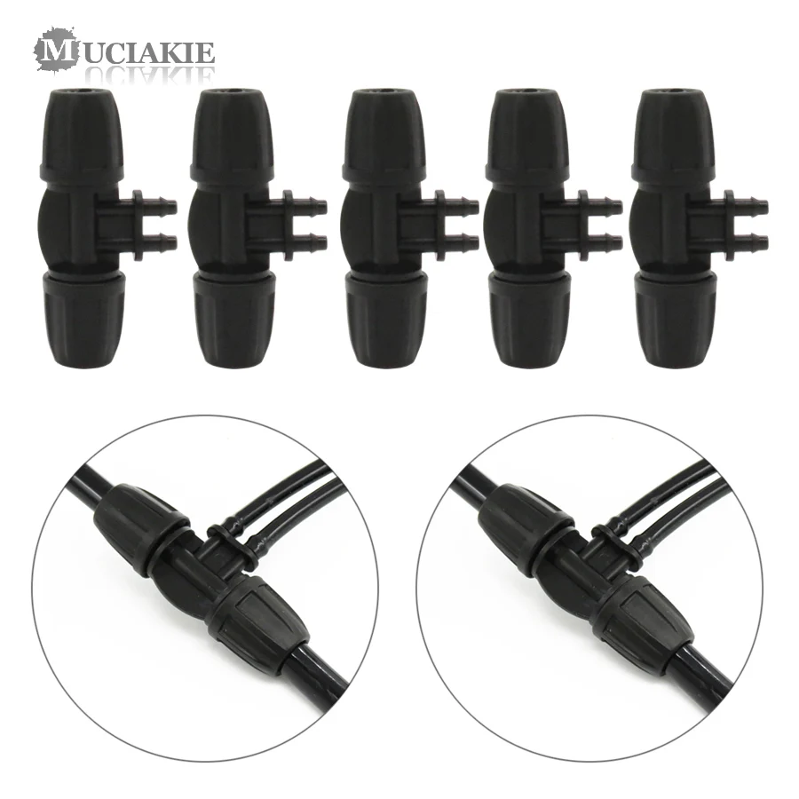 MUCIAKIE, 5 шт., тройник с замком, 3/8 "до 1/4", уменьшающий Т-разъем для микро-ирригатора, микро-ирригатор, фитинг от 8/11 до 4/7