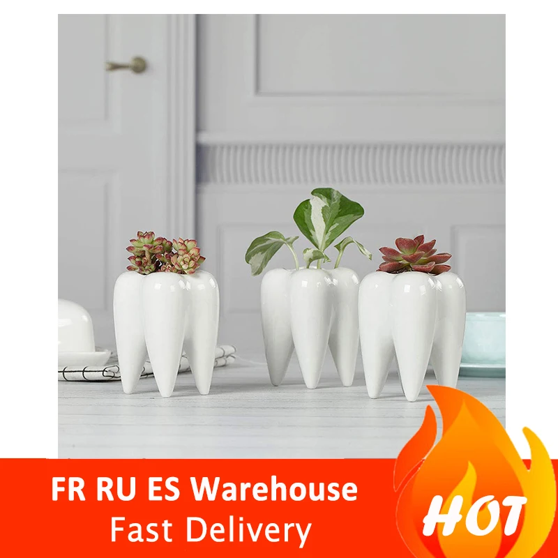 Форма зубов керамический цветочный горшок инновационный современный дизайн белый керамический цветочный горшок для суккулентных растений украшение дома не включает растения