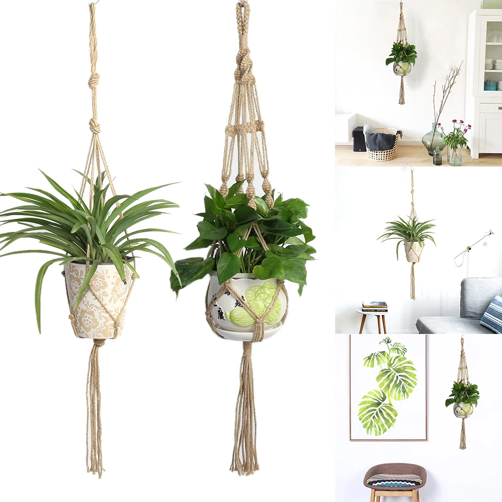 Макраме Boho Завод Вешалка Корзина Лен веревку сеялки сетчатый мешок Свадебные украшения подвесные корзины джутовой веревкой горшок держате...