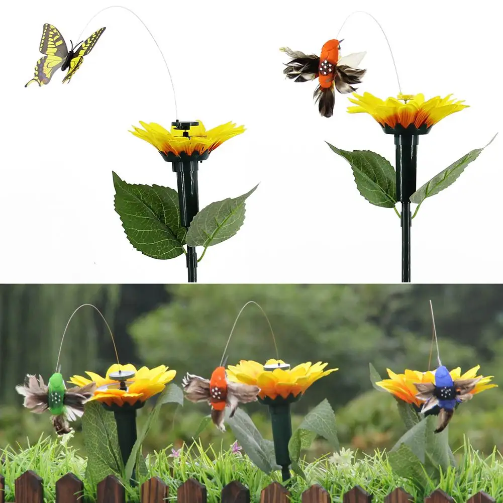 Горячее предложение! солнечные Летающие бабочки птицы подсолнечника двора сада Кол декоративное украшение