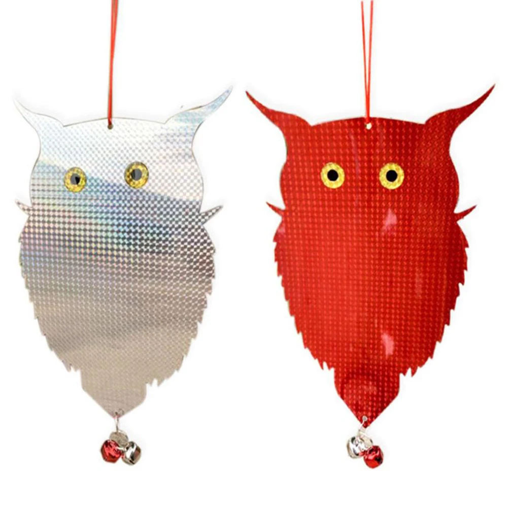 2pcs Garden Bird Repellent Hanging Fake Owl Laser Reflective Owl Scarecrow Scares Birds Pigeons Woodpecker Repellent Birds