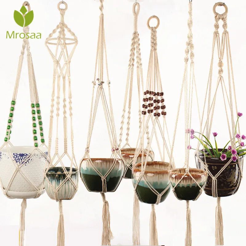 Винтажный Декор 100% макраме ручной работы висячие завязанные подъемные веревки вешалка для растений кашпо для цветочного горшка для украше...
