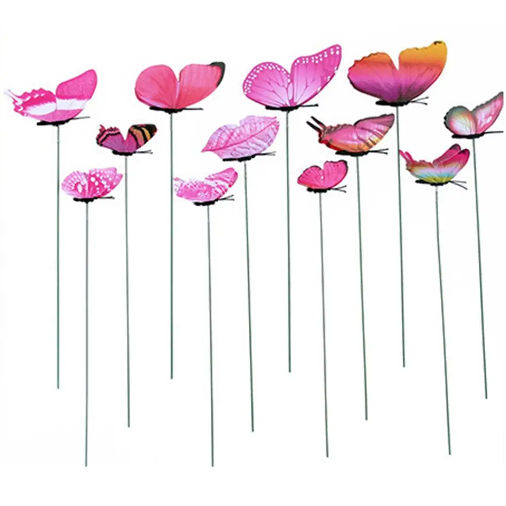 12 шт. имитация бабочка стержень цветочный горшок ваза садоводческий бонсай зеленое растение украшения полюс набор с вантузом бабочка