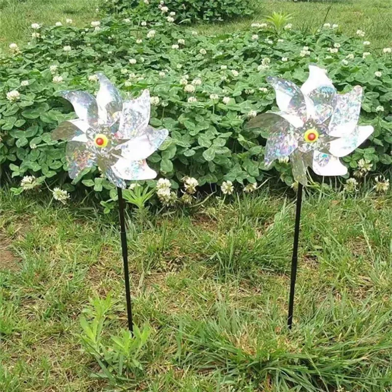 Лазерная Серебряная ветряная мельница, отпугиватель птиц, ветряная мельница, Блестящая серебряная мельница, птица, удерживающая для сада, с...