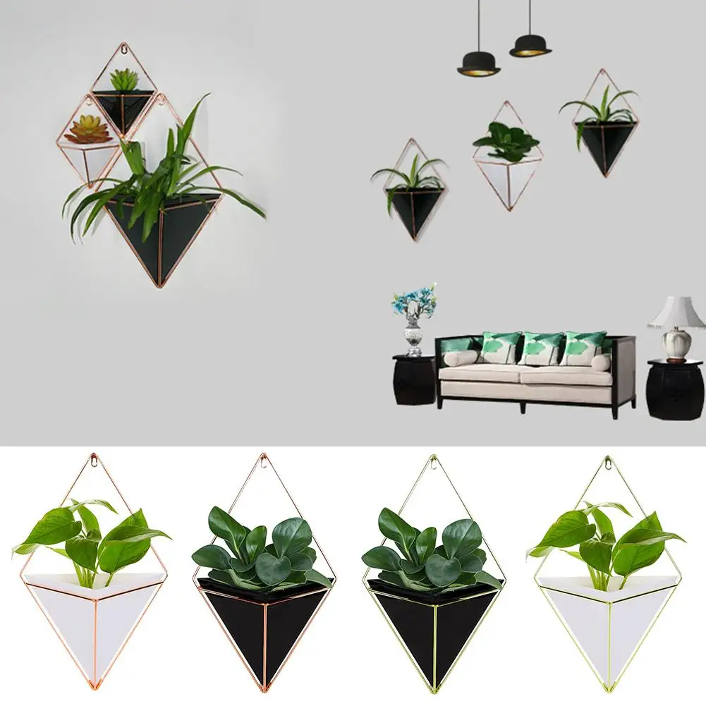 Акриловый геометрический цветочный горшок для растений, подвесной горшок с держателем, кашпо для суккулентных растений, ваза, Настенный декор, подвесной кашпо, домашний декор
