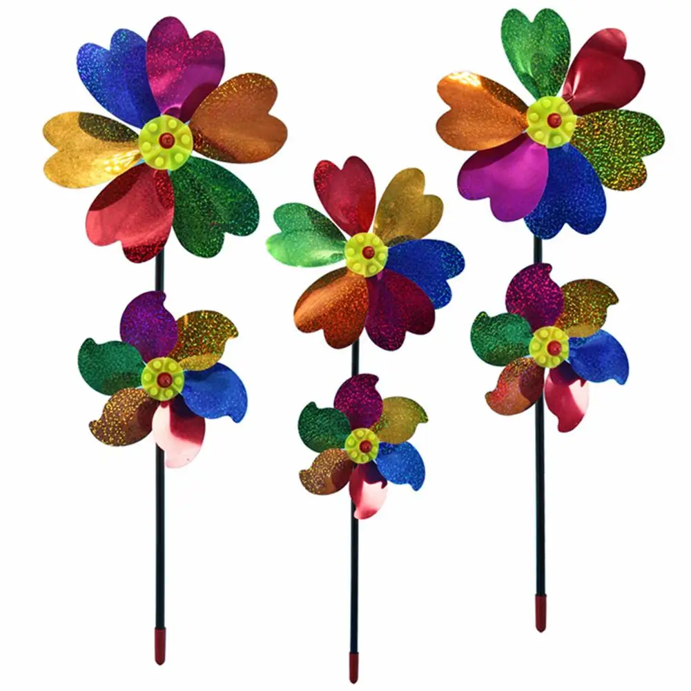Двухслойная цветная шестилистная лепестковая большая ветряная мельница 58 см ПВХ экологически чистая наружная садовая лужайка ветряная ме...