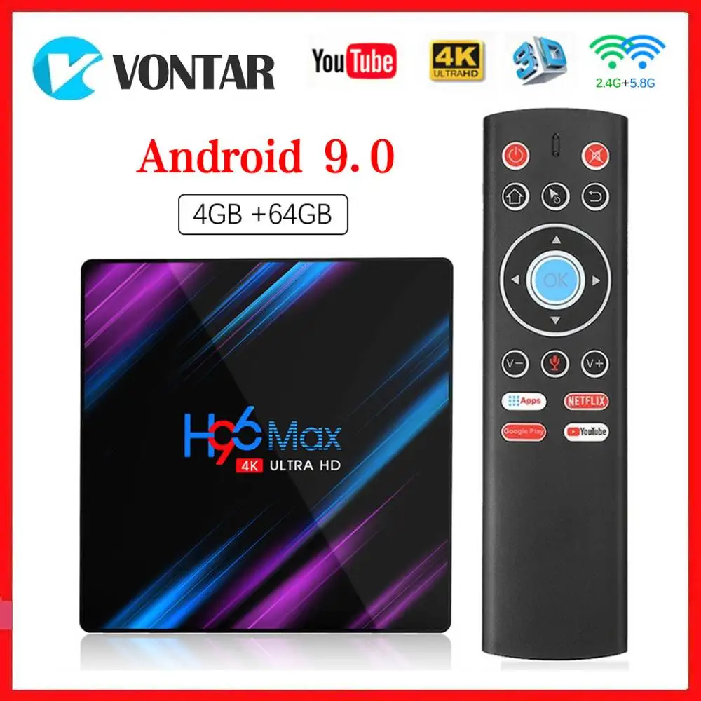 Vontar Smart TV Box Android 9,0 H96 MAX 4 ГБ ОЗУ 64 Гб ПЗУ TVBOX 5G WiFi 4K медиаплеер Google Netflix Youtube телеприставка