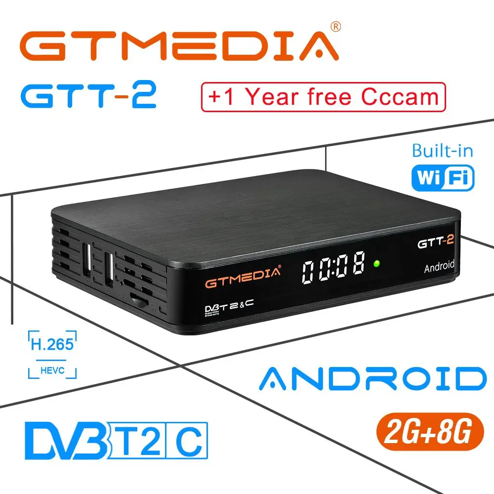 GTMEDIA GTT2 DVB-T2/C android 2g + 8g 1080p iptv android 6,0 android DVB-T2 signal freesat gtt h.265 встроенный Wifi 2,4G cccam m3u