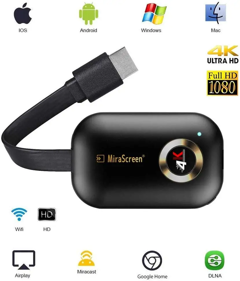 MiraScreen Беспроводной Wi-Fi HDMI дисплей Dongle 2,4 ГГц ТВ-палка Miracast Airplay переходник DLNA для смартфонов или планшетов на HD tv