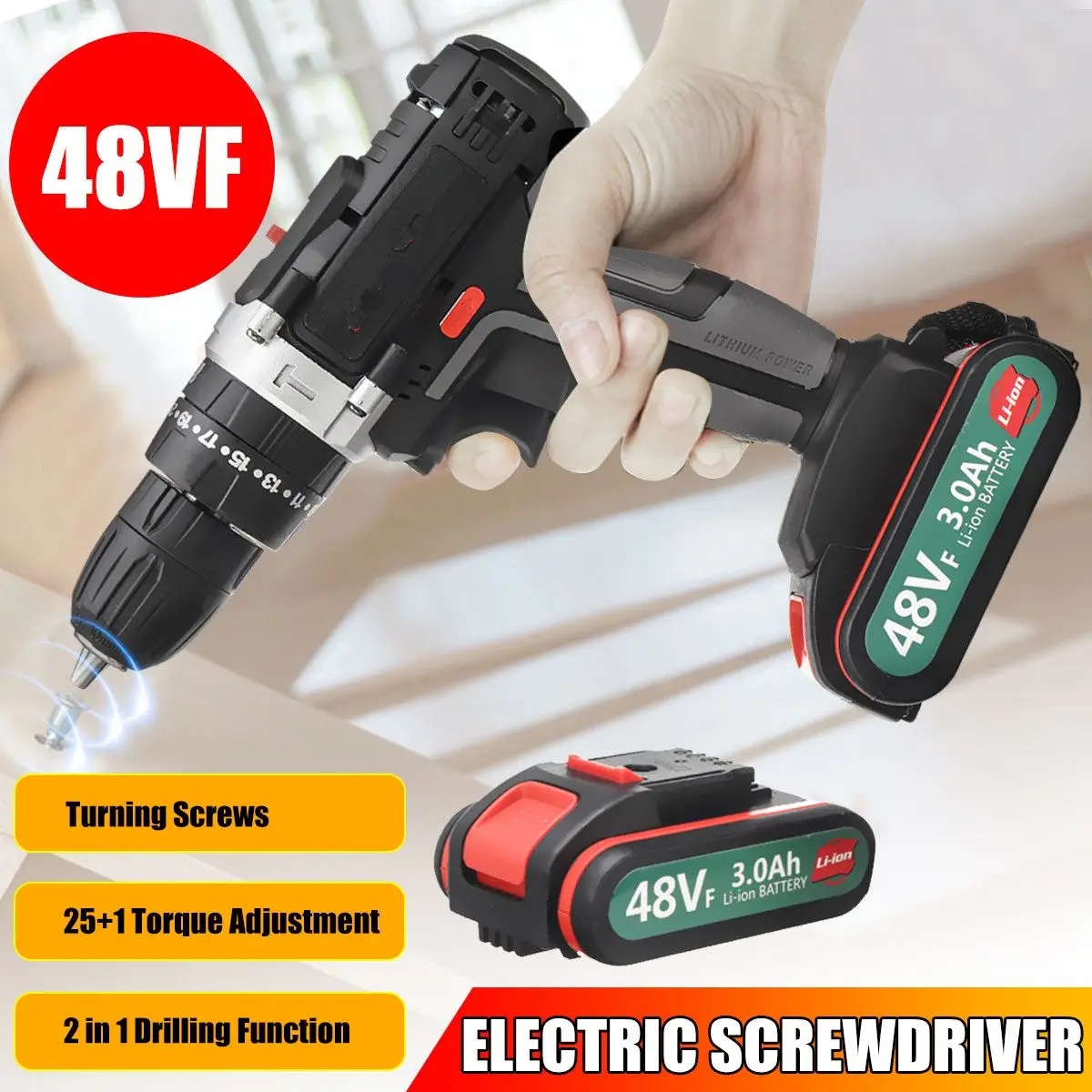 48VF 3000 мАч шуруповерт электрический шуруповерт беспроводной дрель профессиональные электроинструменты ручная дрель с зарядным аккумулятором