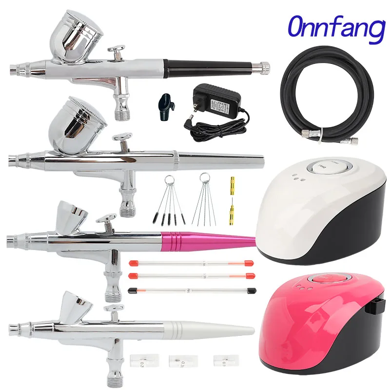 Onnfang Горячая продажа набор воздушных компрессоров с двойным действием Аэрограф Краскораспылитель для дизайна ногтей макияж Air-кисть компле...