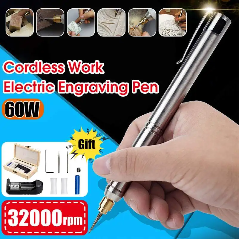 Перезаряжаемая мини-гравировальная Ручка 60 Вт 32000 об/мин электрическая шлифовальная машина шлифовальный станок полировщик DIY гравер резной...