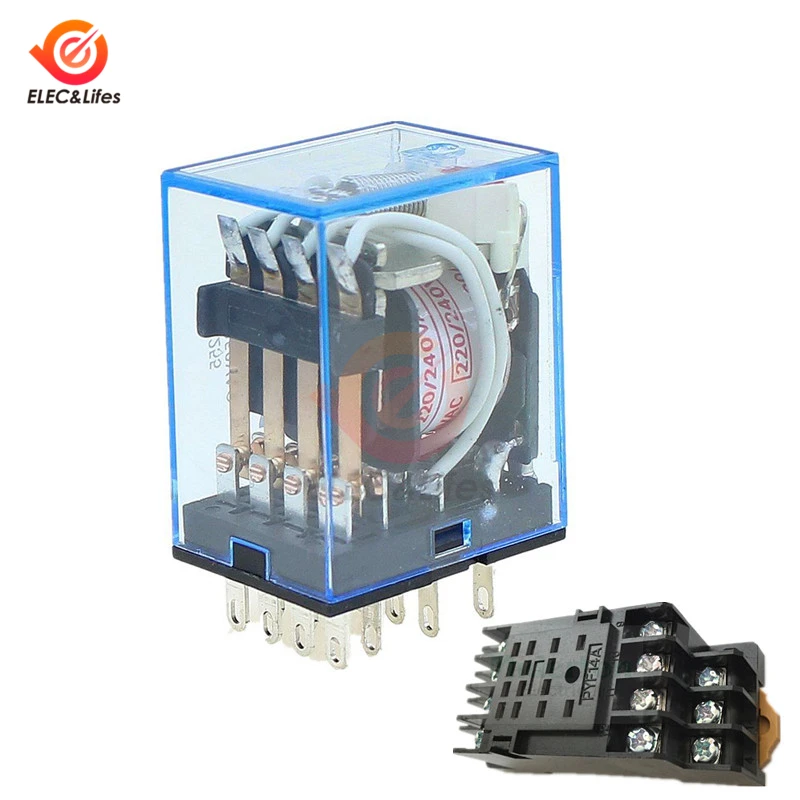 DC 12V 24V AC 220V MY4NJ мини электромагнитное реле медная катушка общий микро-переключатель питания реле PYF14A 14pin гнездо База