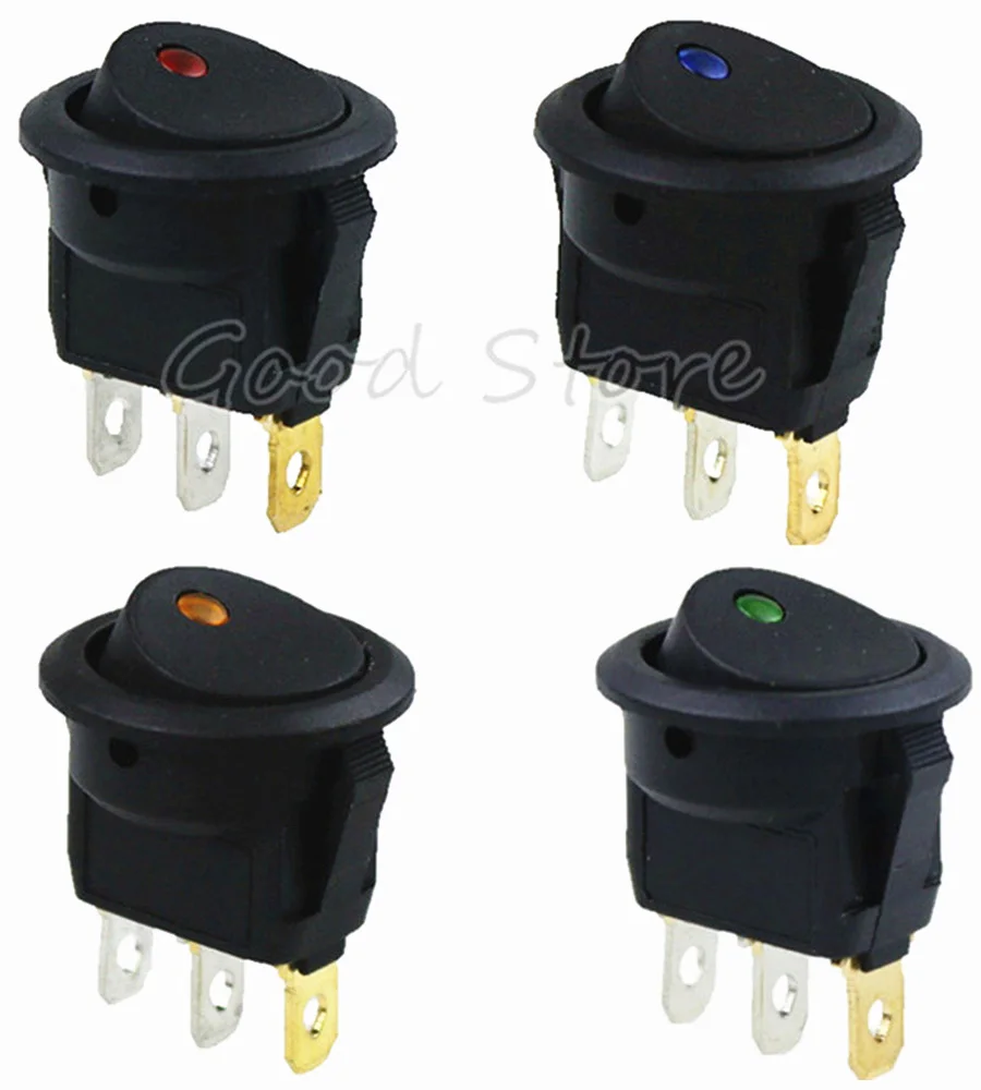 Светодио дный 1 шт. В 12 В SPST переключатель светодиодный практичный точечный переключатель автомобиля Лодка Круглый Рокер ВКЛ/ВЫКЛ AC 6A/В 125 В 3A...