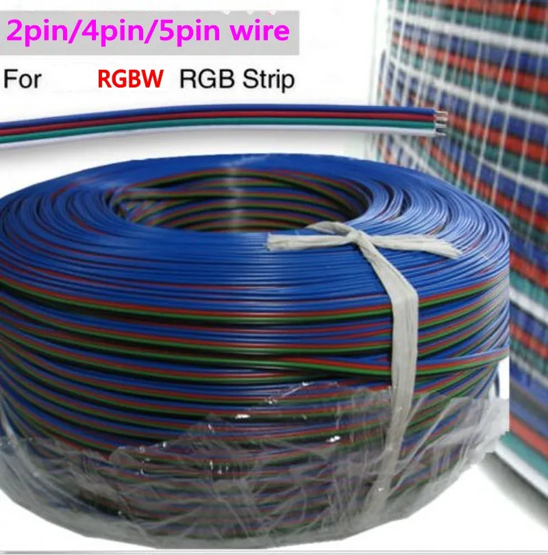 2/3/4/5 Pin RGB/RGBW Удлинительный кабель длиной 1 м/10 м/20 м/100 м питания со светодиодной полосой шнур провод 22AWG