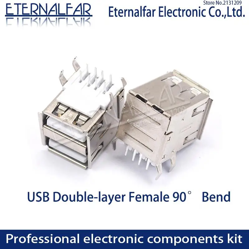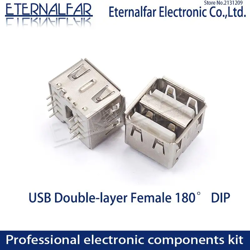 USB 2,0 разъем разъема типа А двухслойный Женский 180 градусов 8PIN обжимной DIP изгиб иглы сварочный провод PCB DIY