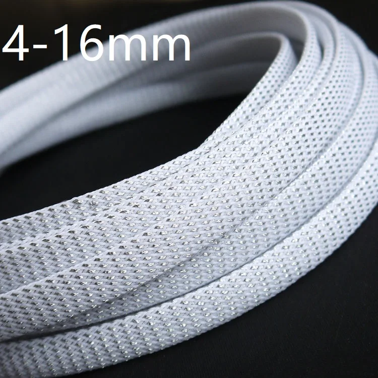 White_Silver Плетеный ПЭТ расширяемый рукав новый высокое качество 4 мм ~ 16 мм выбор