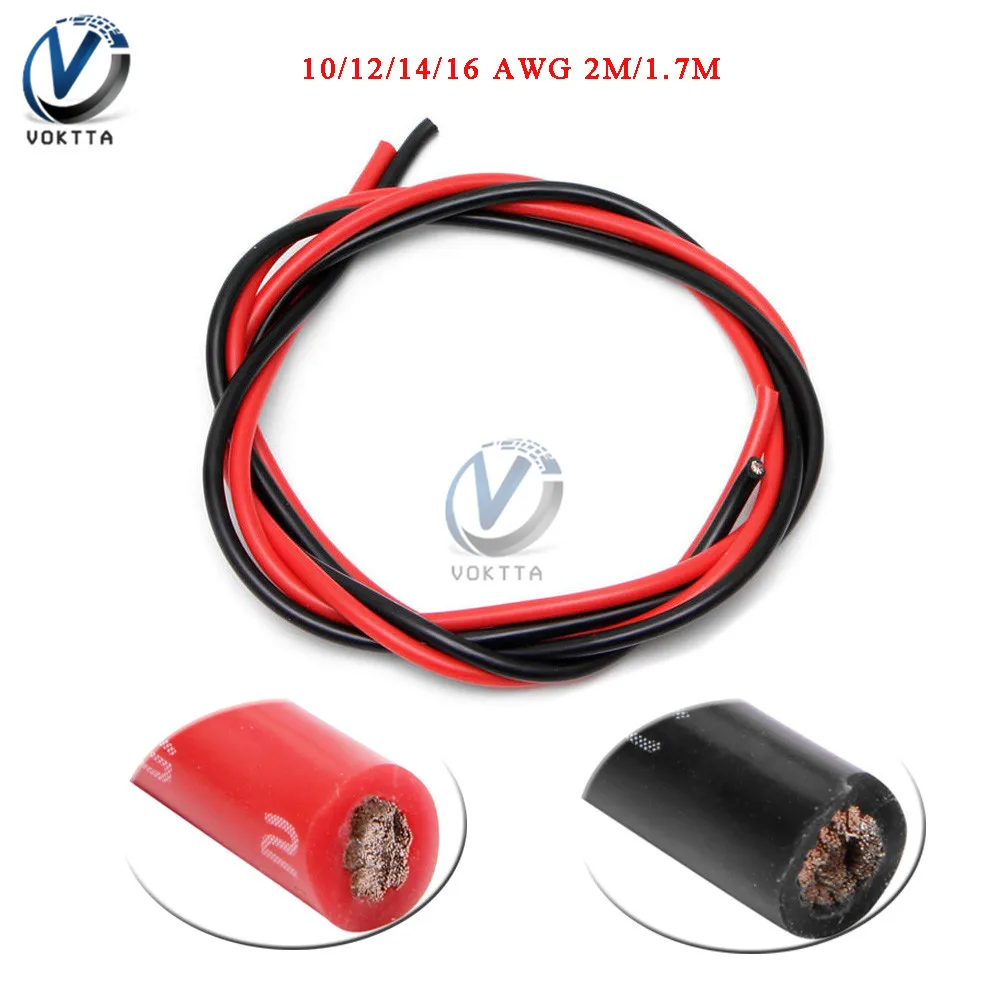 1 комплект 10/12/14/16 Калибр AWG Электрический провод мягкий силиконовый кабель Температура Гибкая Медь кабель черный + красный (1 м/85)