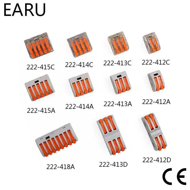 Wago, тип 222-412 222-413 222-415 компактный проводной соединитель-проводник клеммной колодки с рычажком 0,08-2.5mm2 214 218 SPL-2 3