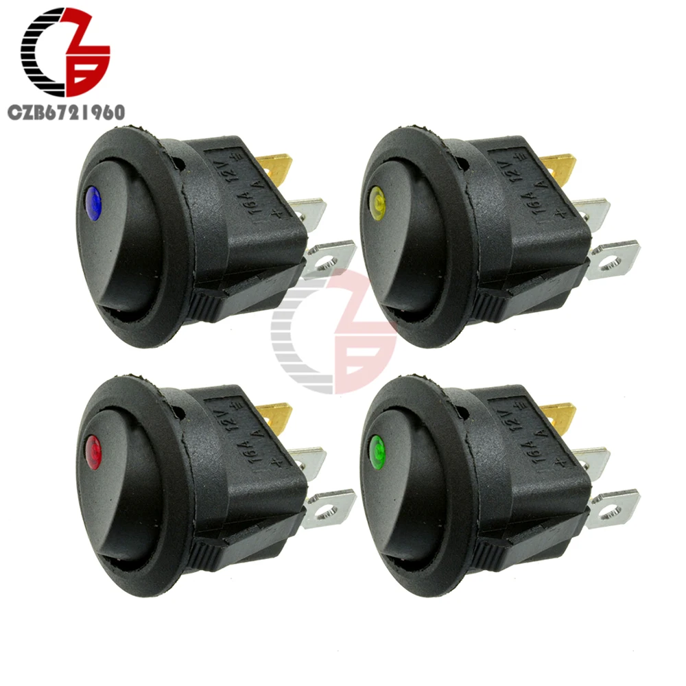 4 шт. автомобиля Auo тумблер Swithes 12 В в 3Pin Круглый Рокер ВКЛ светодио дный Выкл Led тумблер SPST переключатель