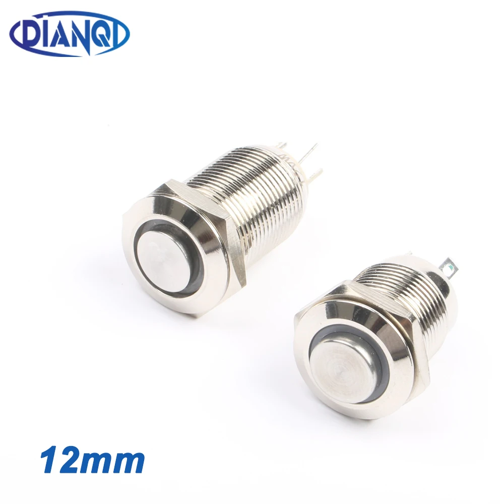 12 мм Металлические латунные кнопочные переключатели кольцевая подсветка высокий круглый Выключатель без фиксации 1NO Контактный Терминал 12GTHX 12V