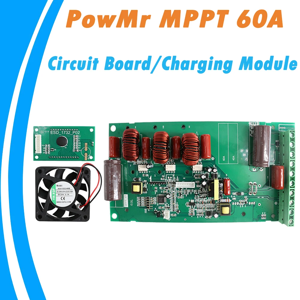PowMr MPPT контроллер солнечного заряда 60A печатная плата с вентилятором и подсветкой lcd 12 В 24 в 36 в 48 в модуль солнечного регулятора абсолютно но...