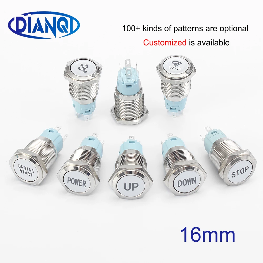 16 мм, настраиваемая кнопка, металлическая, латунь, родиевое покрытие, кнопочный переключатель, кольцевая лампа, плоский круглый вентилятор, ...