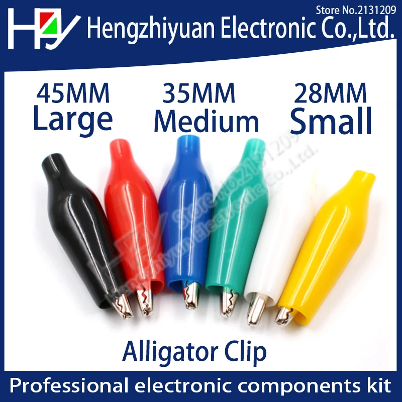 Nsulation Металл Крокодил Электрический тесты 28 мм 35 45 привести красочные красные, черные синий зеленый белый желтый Малый крокодил клип