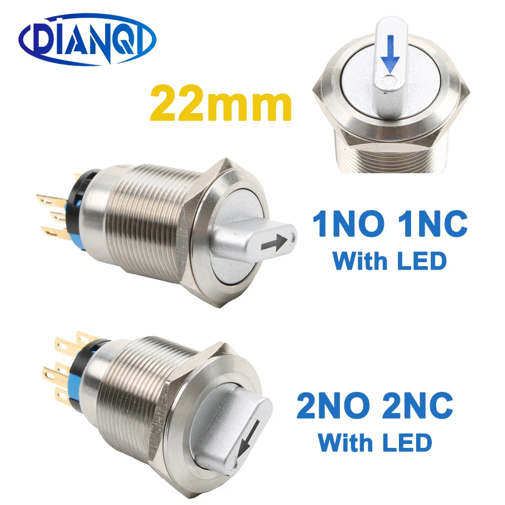 22 мм водостойкий со СВЕТОДИОДНЫЙ одной стрелкой кнопочные переключатели повернуть без NC 2NO 2NC DPDT кнопки с машинками